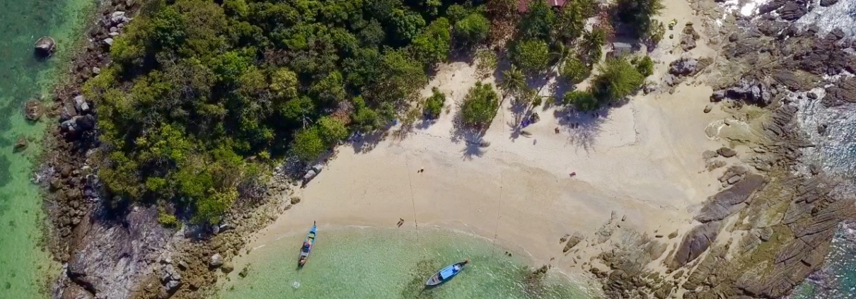 Monkey Beach nahe Kho Phi Phi, bei genauem hinschauen sieht man die Äffchen